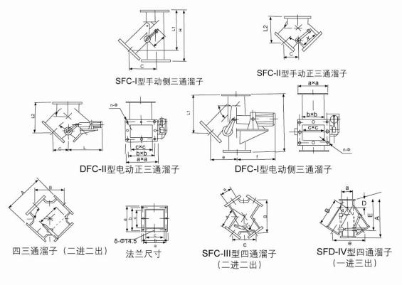 • DFC電動(手動、電液動與氣動)三通分料閥分為Ⅰ、Ⅱ型,均帶導(dǎo)向板,Ⅰ型為側(cè)三通分料閥,Ⅱ型為正三通分料閥,四通分料閥分為Ⅲ、Ⅳ型,均帶導(dǎo)向板,Ⅲ型為二進(jìn)二出,Ⅳ型為一進(jìn)三出。